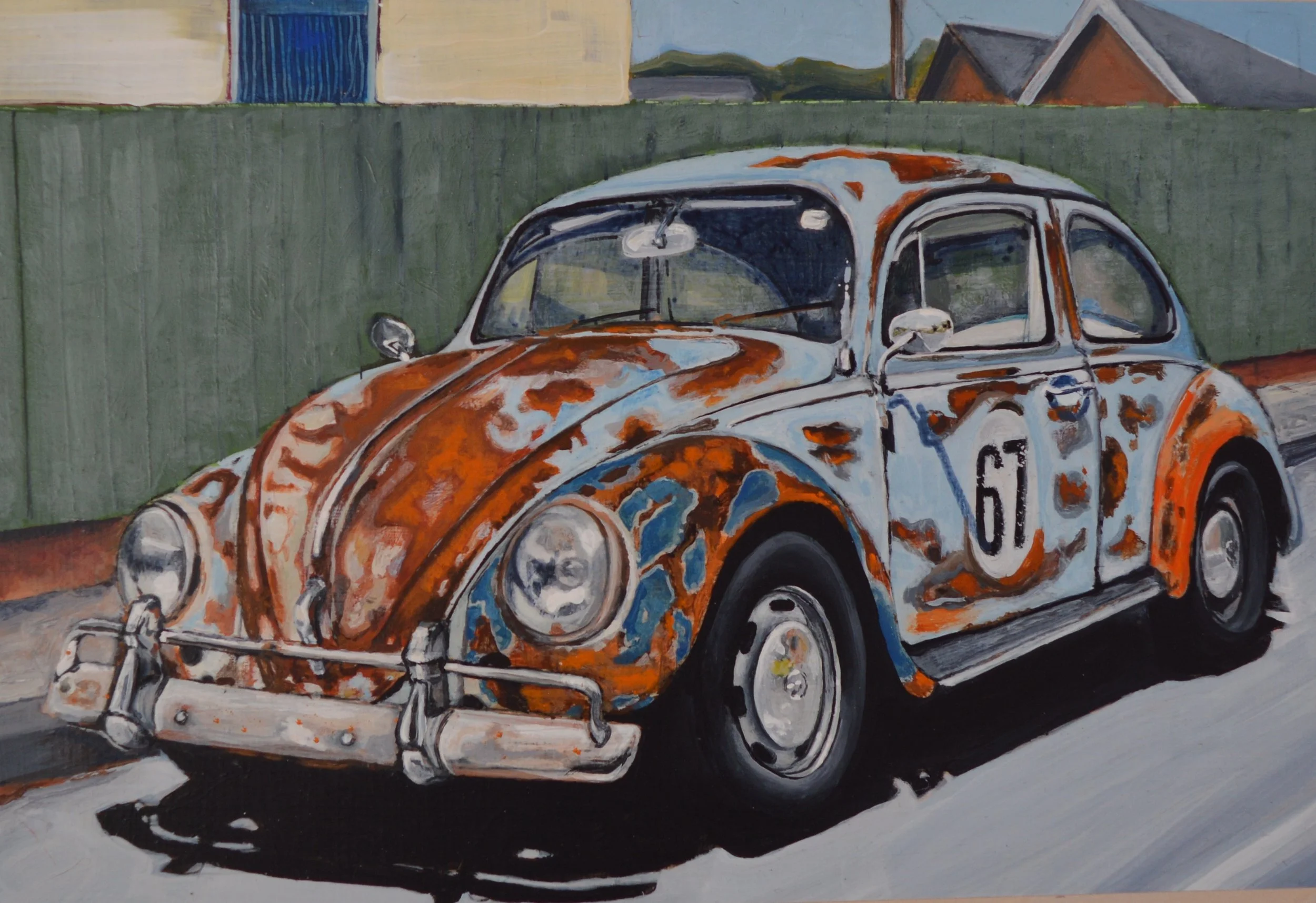 Hereford Beetle. Acrylic on board, 2020 40x30cm
