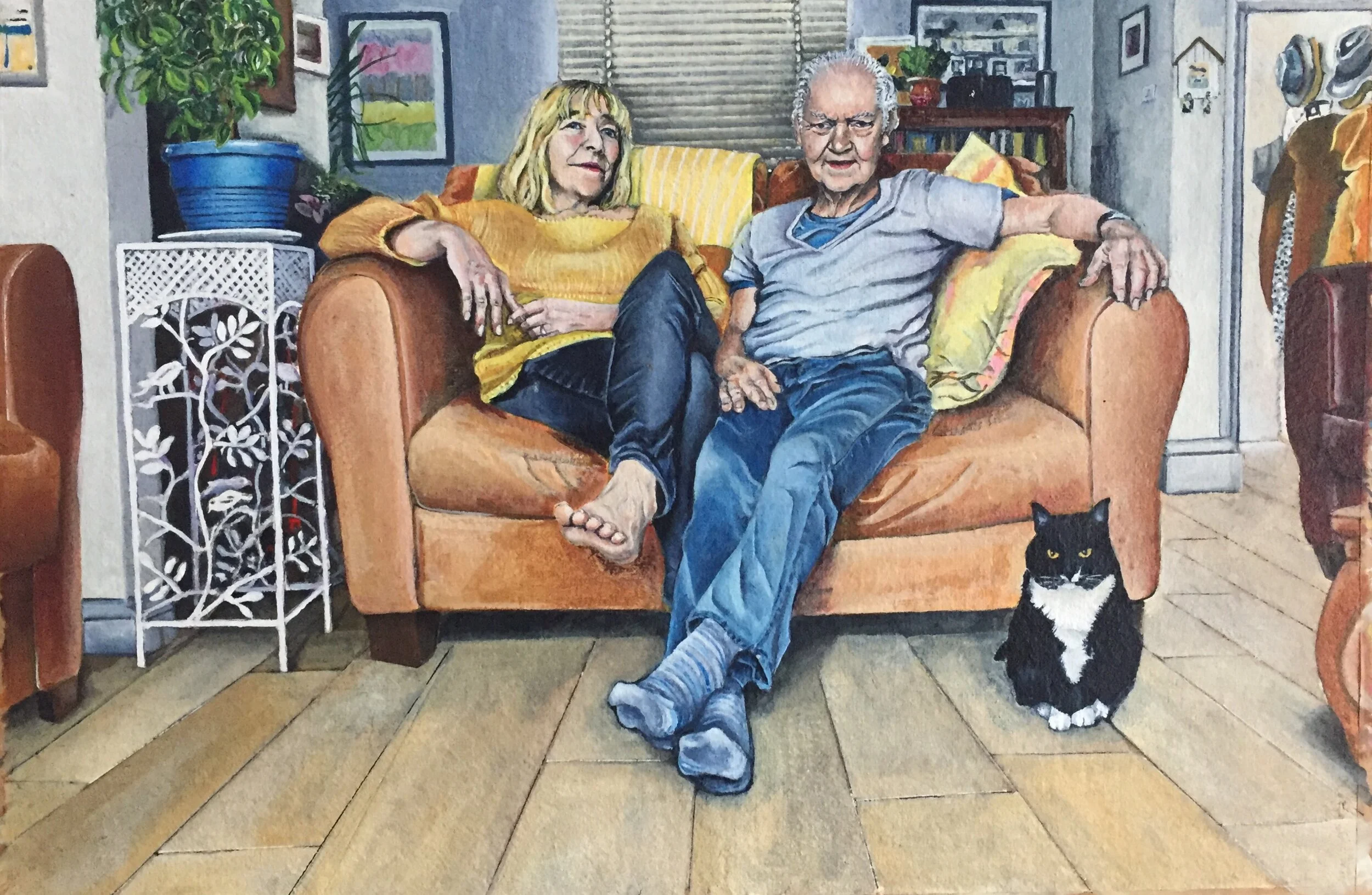 Pete & Pat Cameron, Acrylic on paper 2021 70x50cm
