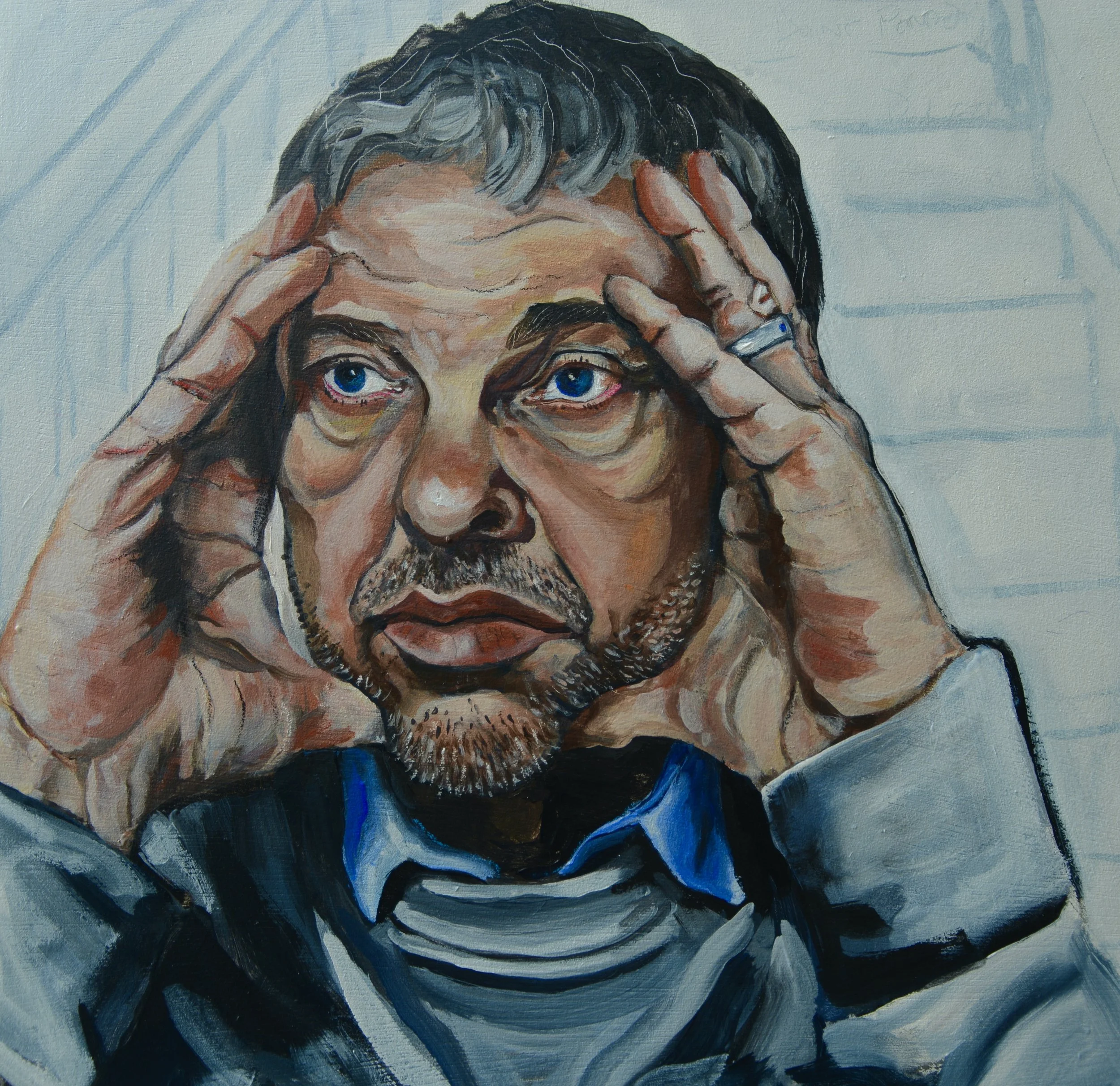 Self Portrait overthinking. Acrylic on Board 2024 50x50cm